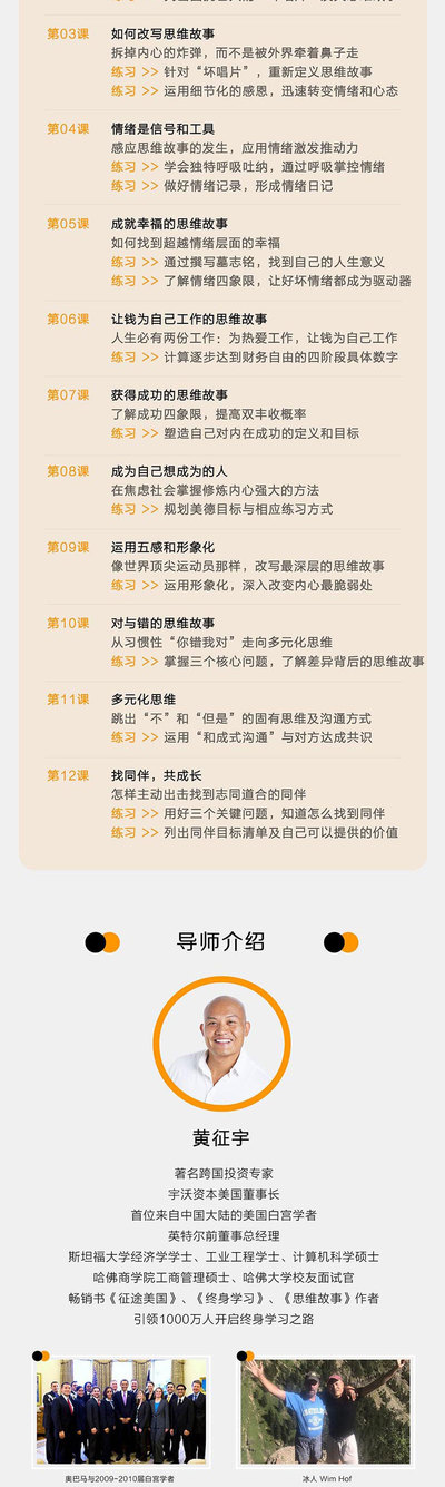 畅销书《终身学习:哈佛毕业后的六堂课》、《思维故事:掌控人生剧本》作者,浸入式课程“终身学习·超越成长营”导师。