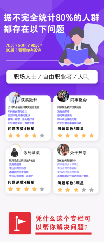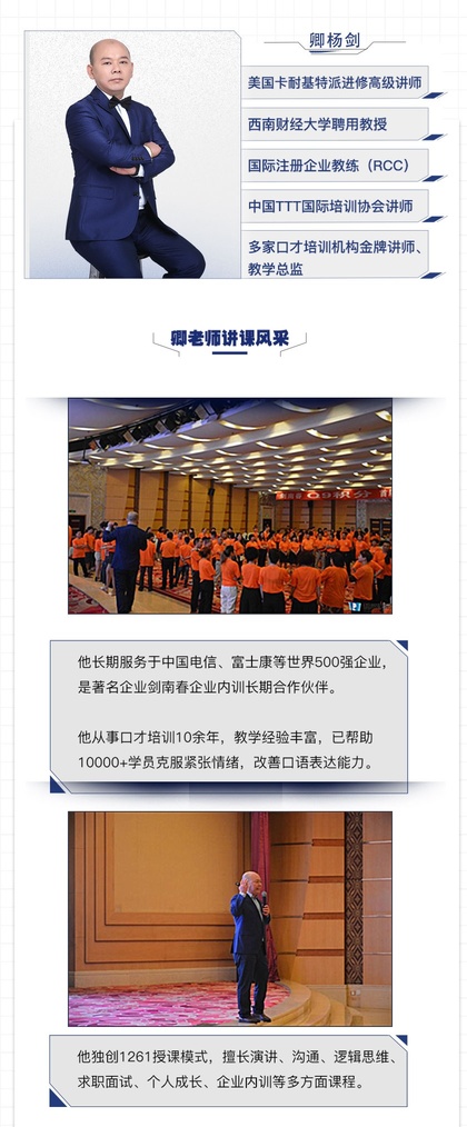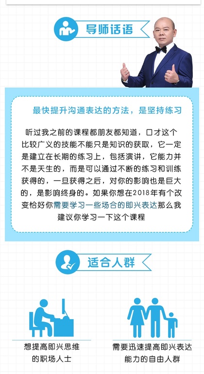 擅长即兴表达、演讲、沟通、逻辑思维、求职面试、个人成长、企业内训等,多方面内容